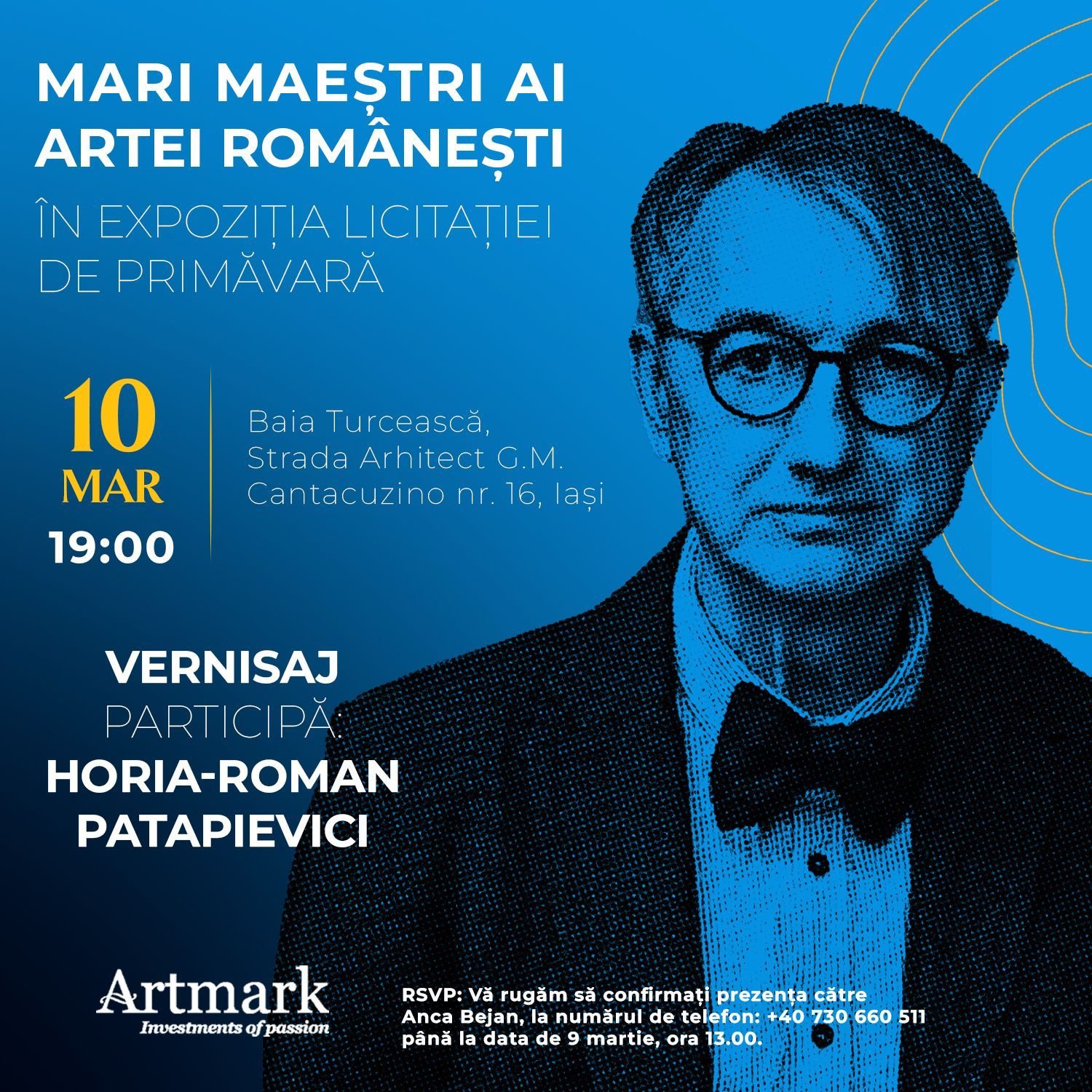 Publicul ieșean este invitat marți, 10 martie, de la ora 19.00, la vernisajul expoziției „Mari Maeștri ai Artei Românești”, organizată de Casa de Licitații A10 by Artmark la Centrul Internațional de Artă Contemporană Baia Turcească, în cadrul evenimentului Luna Sculptorilor Români, unul dintre cele mai importante momente culturale ale orașului. Evenimentul îl are ca invitat special pe Horia-Roman Patapievici, scriitor, cercetător în istoria ideilor și președinte Artmark.