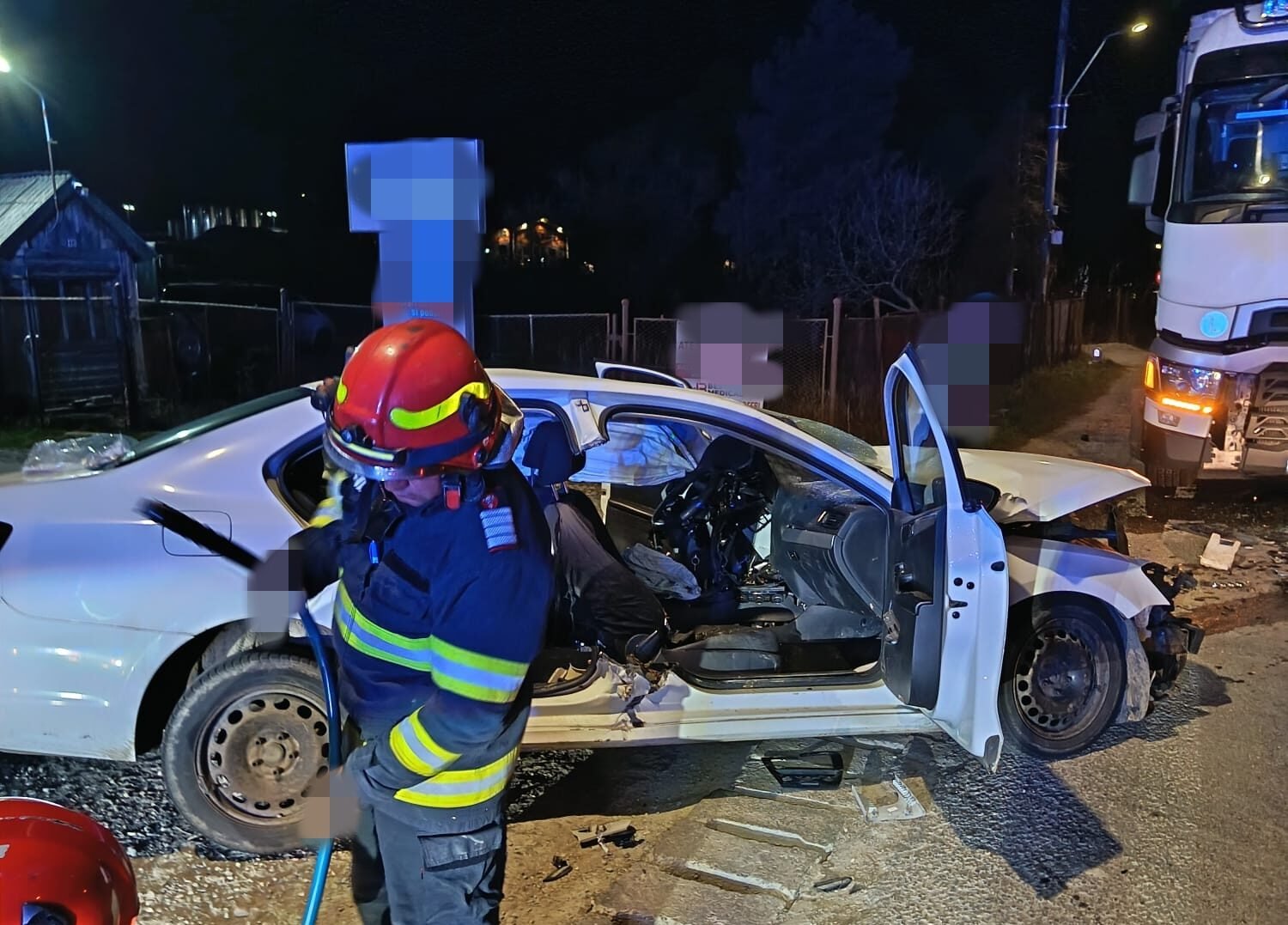 În autoturism se aflau trei tineri, cu vârste cuprinse între 19 și 24 de ani. Doi dintre aceștia au fost găsiți încarcerați, iar unul dintre pasageri era inconștient, însă cu funcții vitale. Salvatorii au intervenit contracronometru pentru extragerea victimelor dintre fiarele contorsionate.
