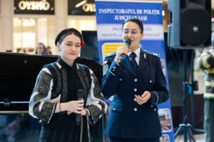 Tânăra artistă Ioana Filip a oferit ieri o reprezentație de excepție în deschiderea Zilei Poliției Iași, desfășurată în zona Palas. Ea a urcat pe scenă alături de purtătoarea de cuvânt a Inspectoratului de Poliție Județean Iași, Adina Ioana, interpretând două piese care au stârnit aplauze și apreciere din partea oamenilor prezenți la eveniment.